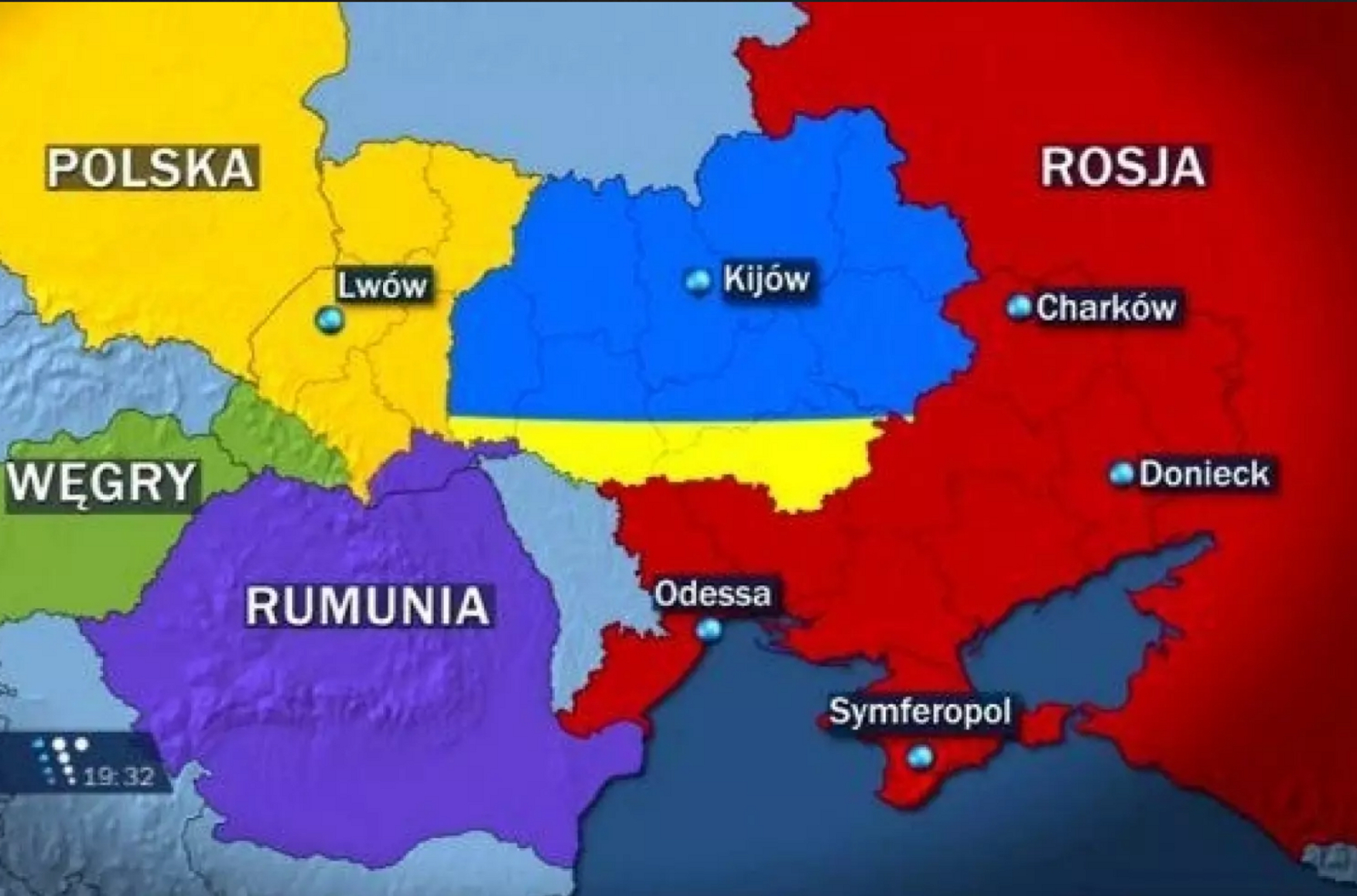 „Карта, продемонстрированная на польском телеканале. Все, о чем мы ранее уже говорили и к чему готов Запад”, — написал Кива.