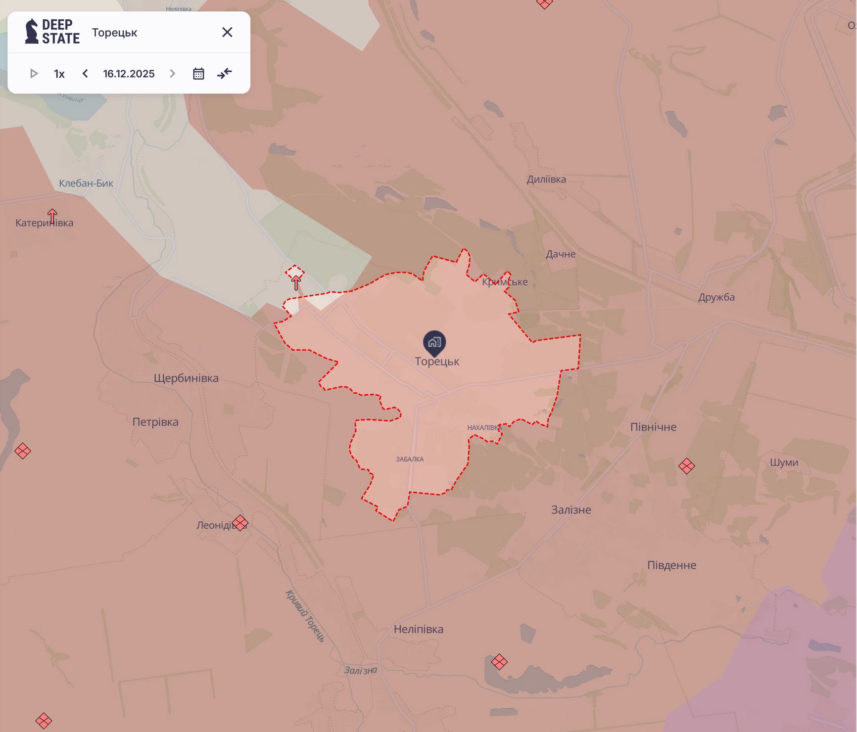 11 декабря начальник Генштаба РФ Валерий Герасимов объявил о взятии Северска в Бахмутском районе Донецкой области. По информации DeepState, западная часть города все еще в зоне боев. Довоенное население Северска — 10875 человек.