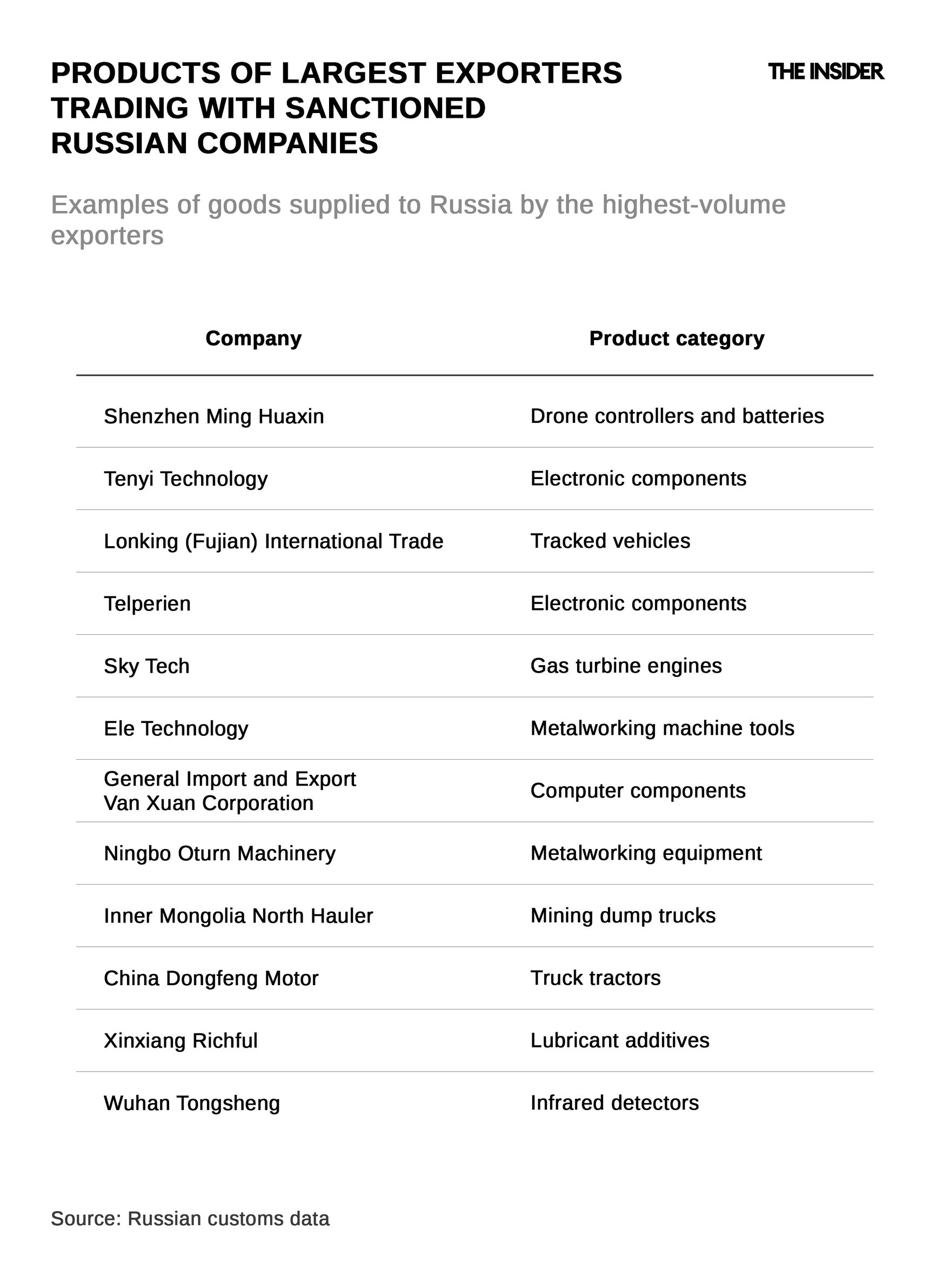 The Insider has identified over 6,000 companies that are directly violating international restrictions by trading with sanctioned Russian enterprises and defense industry suppliers, thereby profiting from the war in Ukraine. More than 4,000 of them are based in China, while many of the others are Turkish and Emirati businesses. Among their Russian counterparties are numerous entities that have already been placed on sanctions lists by the U.S., UK, and EU. Yet these sanctioned Russian companies continue to procure the goods they need from abroad.
