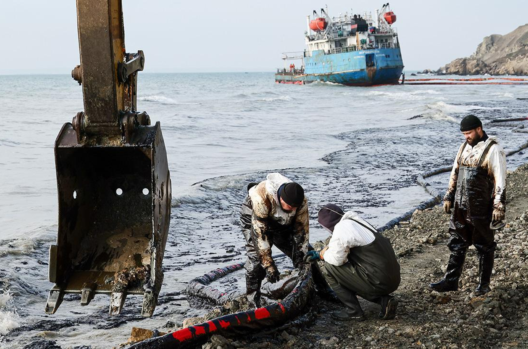 Cover photo: Fuel oil spilled from the Volgoneft-239 tanker washed up on the shore of Russia's Krasnodar Krai being cleaned up by workers. Photo: Sergei Malgavko, TASS