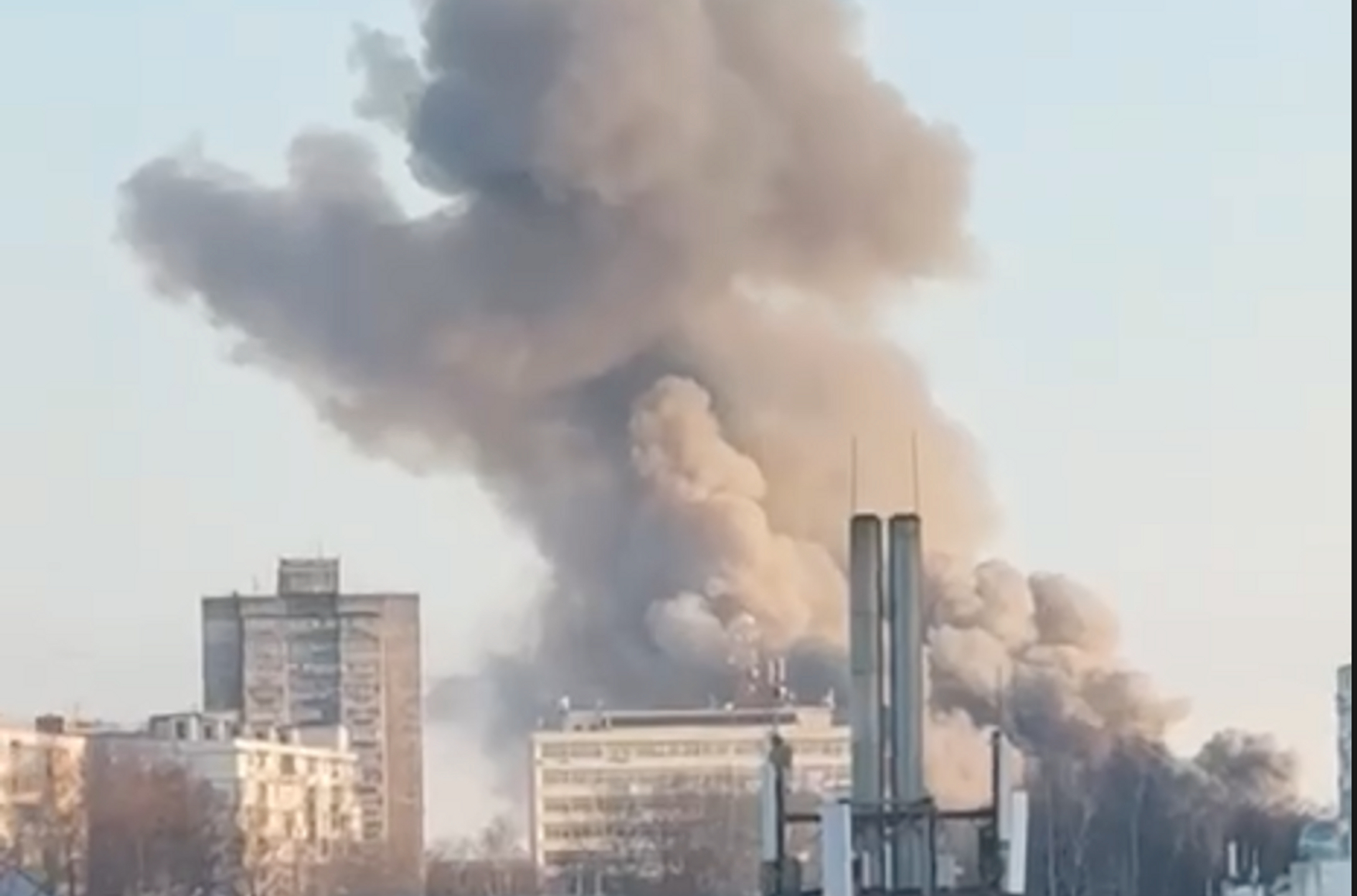 Black smoke rising above Bryansk after missile strikes on March 10. Photo: Telegram