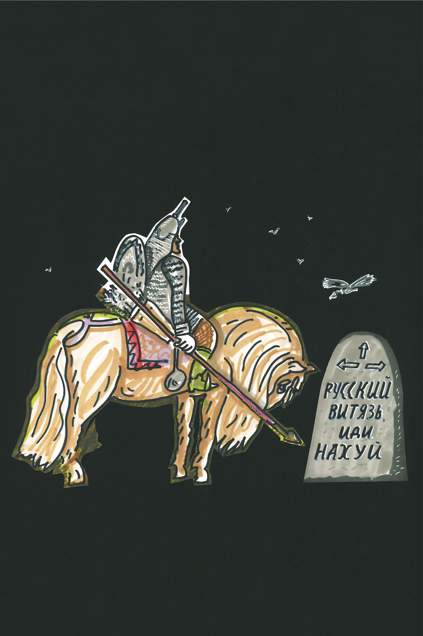 Эта картинка нарисована почти с натуры. Никогда не забуду 6 мая 2012 года, те минуты, когда мы приближались к Большому Каменному мосту. Он был пуст. Никакого движения не было — оно было перекрыто. Мост был частью свободной линии горизонта, из-за которой буквально в считанные секунды появилась черная полоса. Когда мы поняли, что это омоновцы, плотно стоявшие в несколько рядов, мы остановились и остолбенели. Это был тупик. Тупик в истории страны. Тогда мы еще не знали, что главный тупик нас ждет впереди.