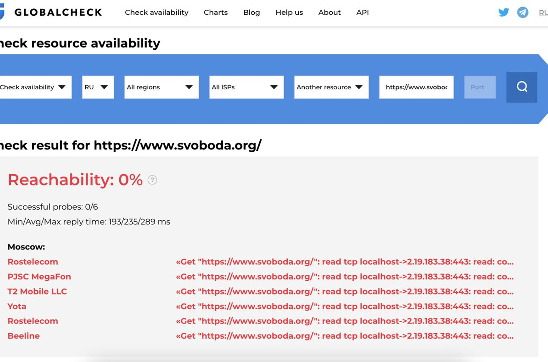 Ресурсы заблокированы у клиентов практически всех магистральных провайдеров, кроме «Ростелекома» (это не касается «Радио Свободы» и Deutsche Welle). По данным GlobalCheck, блокировка идет через ТСПУ — технические средства противодействия угрозам. Это комплекс, позволяющий ограничивать доступ к информации, распространение которой запрещено на территории России. При этом судебных решений о блокировках и запретах у большинства не было, как и предписаний Роскомнадзора или внесения в реестр «запрещенных сайтов».