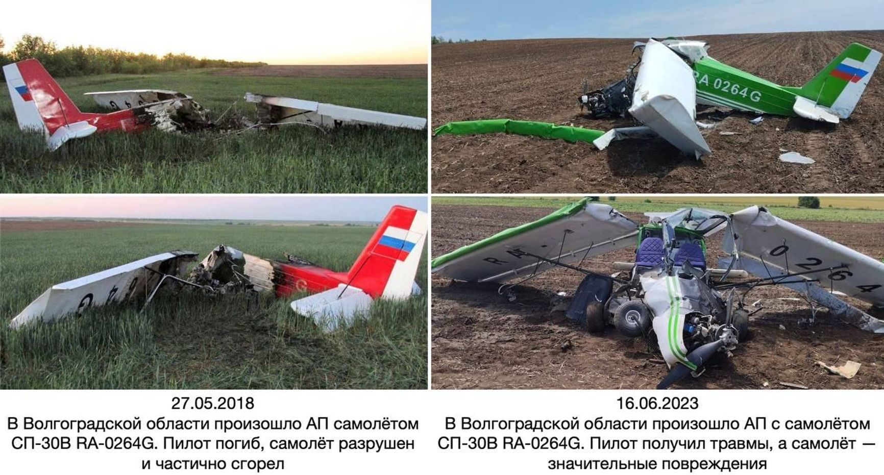 16 июня в Волгоградской области при выполнении авиационно-химических работ упал сверхлегкий самолет СП-30В авиационно-спортивного клуба «Дельта» с регистрационным номером RA-0264G. Пилот получил травмы, однако выжил. В результате инцидента выяснилось, что этот самолет уже попадал в авиакатастрофу в мае 2018 года, причем почти полностью разрушился, пилот погиб. Однако после ремонта в нарушение правил самолету был выдан сертификат летной годности (СЛГ). Об этом пишет «Авиаторщина».