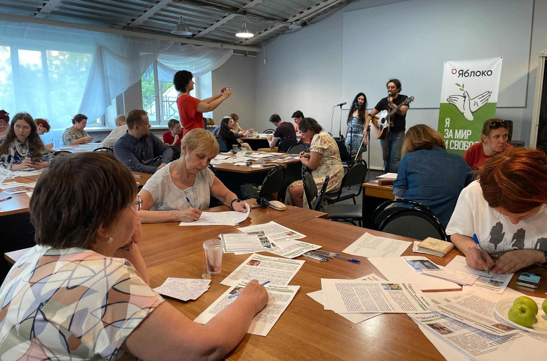 29 мая в московском отделении партии «Яблоко» прошел традиционный ежемесячный вечер писем политзаключенным, на котором любой желающий мог за счет партии написать и отправить неограниченное количество открыток и писем узникам и узницам. Но, в отличие от предыдущих мероприятий, на этом вечере организаторы ввели ограничение — они не принимали послания для тех, кто преследуется по «террористическим» статьям.