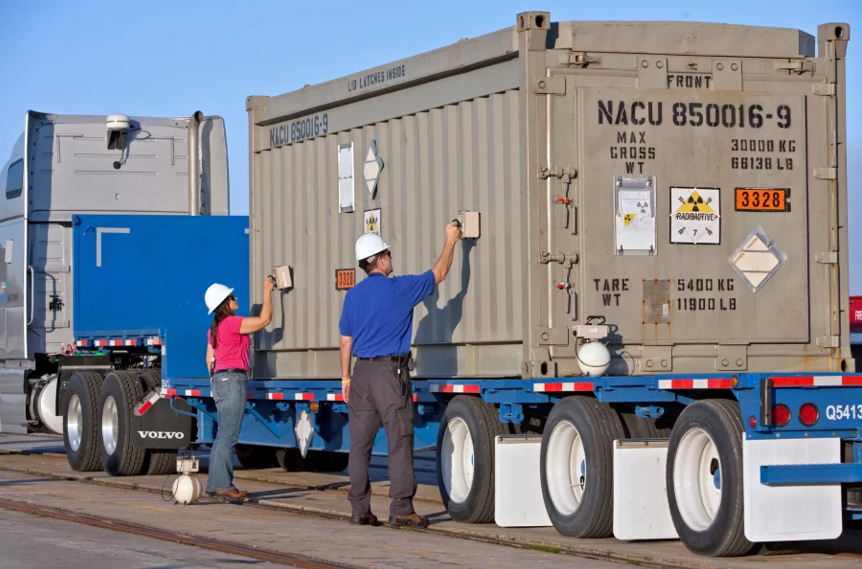 Фото: сотрудники Национального управления по ядерной безопасности США проверяют контейнер с обогащенным ураном, Южная Каролина / AP