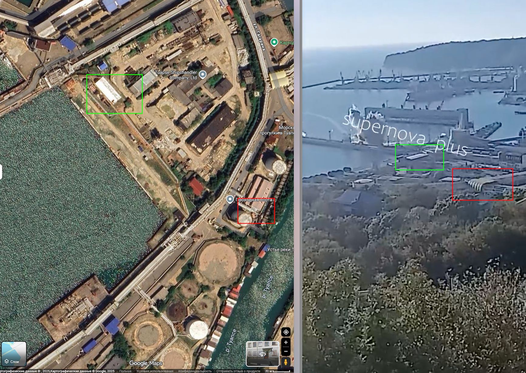 Очевидцы опубликовали видео атаки БЭК по порту в Туапсе. В ролике слышны попытки обстрелять катер, однако он смог доплыть до нефтеналивного пирса. The Insider геолоцировал место удара. Позже локацию подтвердил украинский OSINT-проект «КіберБорошно».