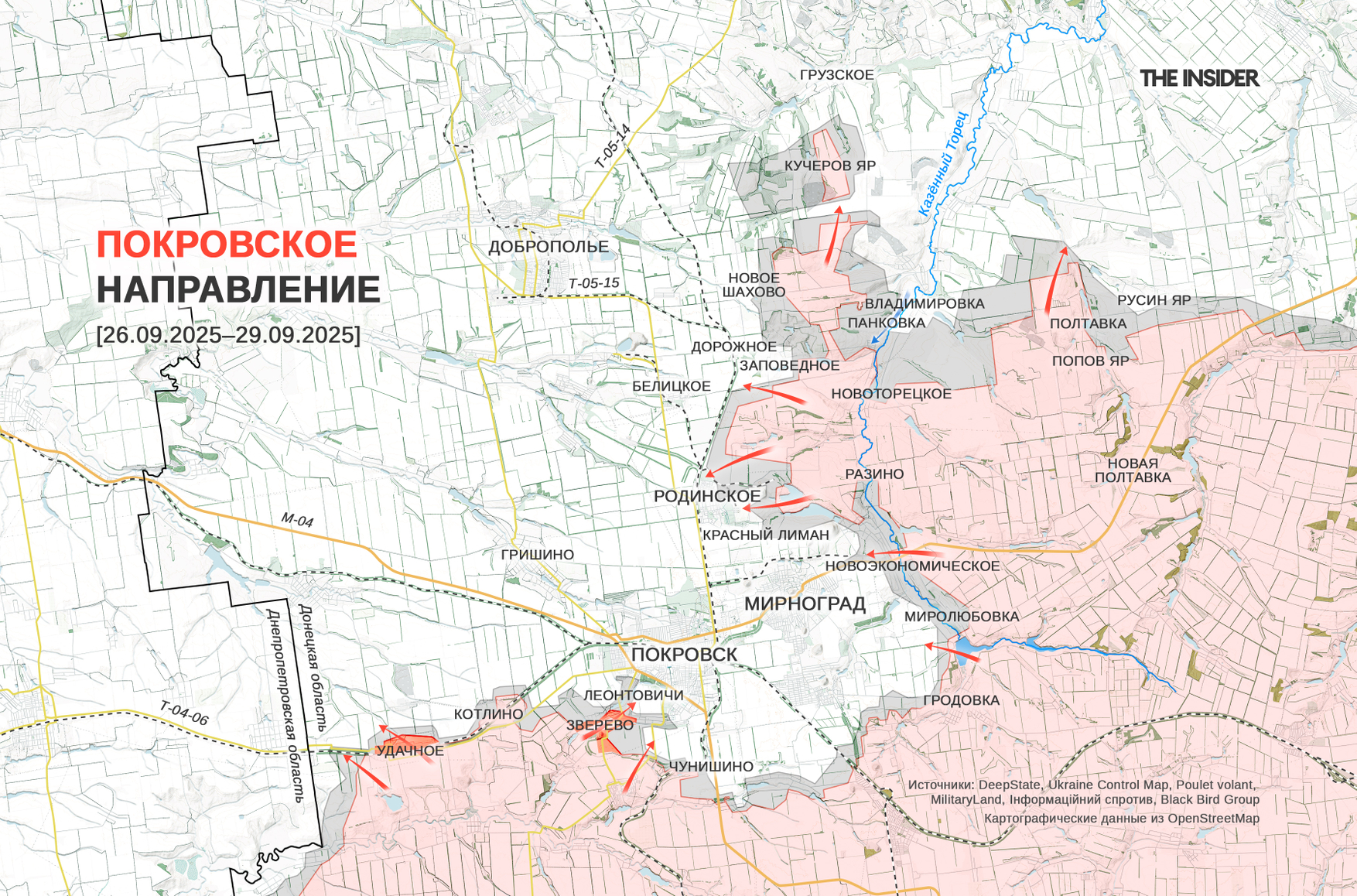 Темпы российского территориального продвижения в сентябре 2025 года упали почти вдвое по сравнению с предыдущим месяцем — было захвачено 225 кв. км против 455 кв. км, пишет «Агентство», опираясь на карту DeepState. Это самый низкий показатель с апреля 2025 года, когда ВС РФ удалось занять 185 кв. км. Наибольшего успеха российские войска добились на юге, у границы Днепропетровской и Запорожской областей, однако на ключевых направлениях — под Покровском и Константиновкой — наступление застопорилось.