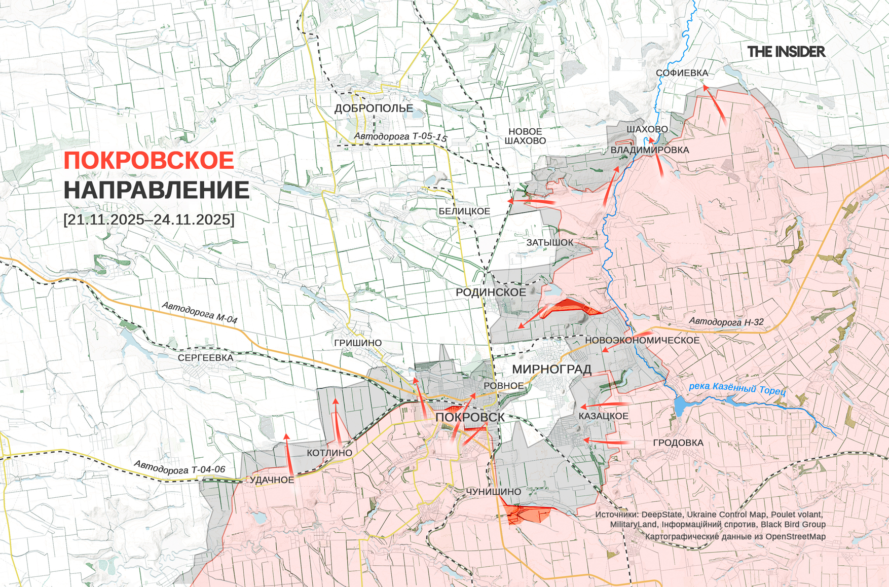 Юрий Котенок утверждает, что Покровск полностью освобожден, а в жилой застройке Мирнограда продолжаются бои, причем украинские военные сохраняют присутствие в его окрестностях.