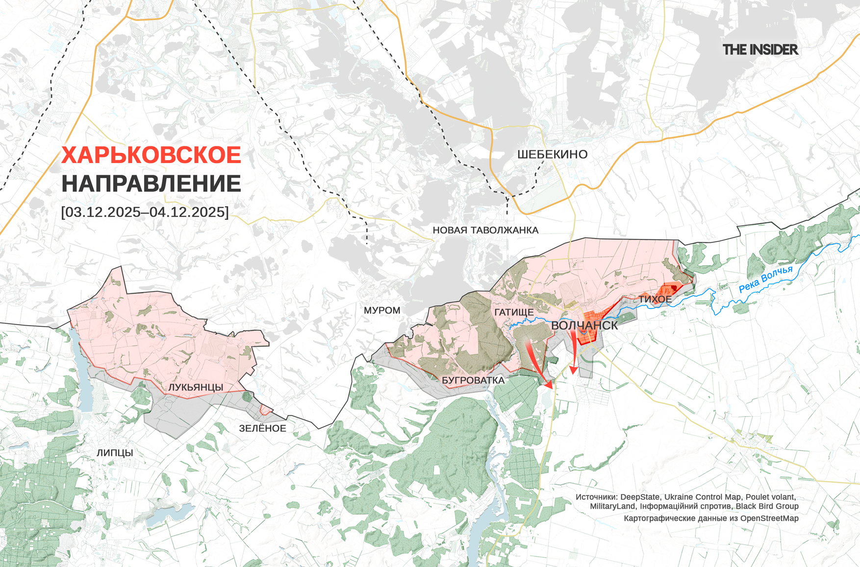 В DeepState отмечают продвижение российских военных в Волчанске и около Тихого к востоку от города. Согласно карте проекта, бо́льшая часть Волчанска находится либо под контролем ВС РФ, либо в «серой зоне».