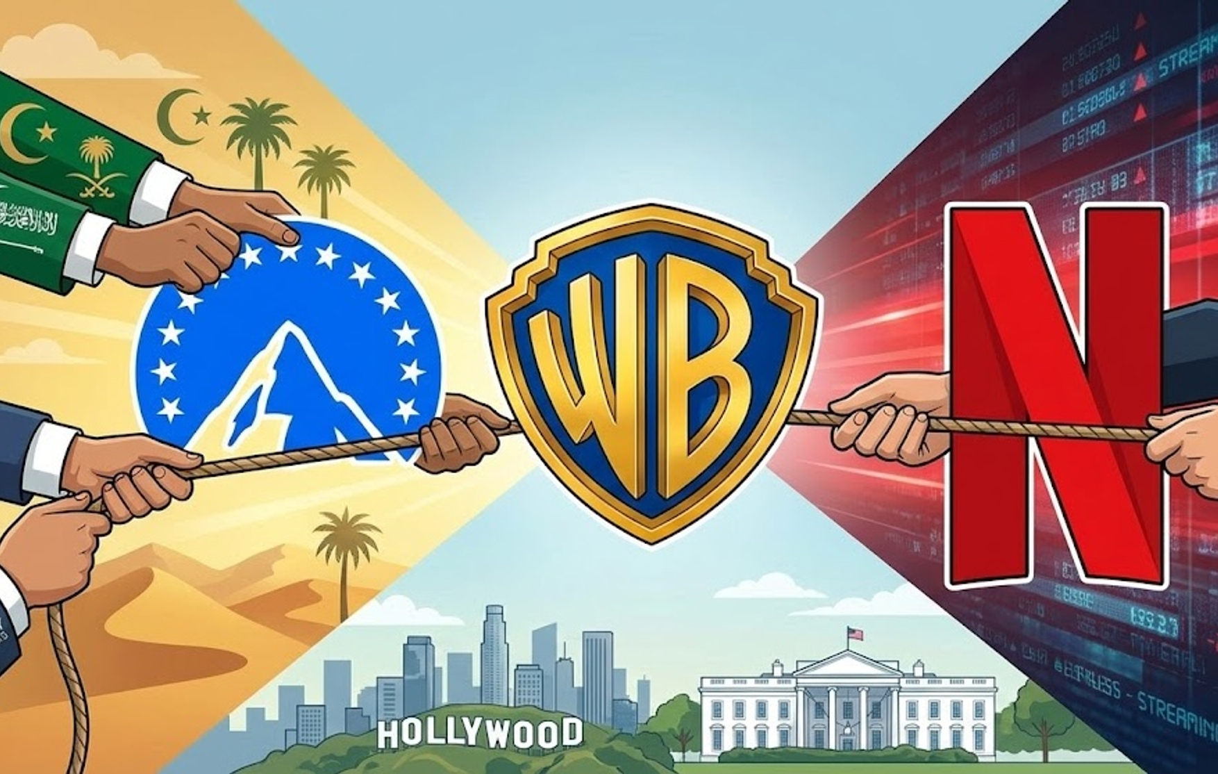 Предложение Paramount оценивает всю Warner целиком — включая студию, стриминговый бизнес и кабельные каналы — в $30 за акцию. Гендиректор Paramount Дэвид Эллисон заявил, что их заявка на $18 млрд выше в денежном выражении, чем «неполноценное предложение» Netflix. Семья Эллисонов и RedBird Capital готовы обеспечить всю необходимую сумму в $40,7 млрд собственным капиталом, а дополнительное финансирование придет от суверенных фондов Саудовской Аравии, Абу-Даби и Катара, а также от Affinity Partners.