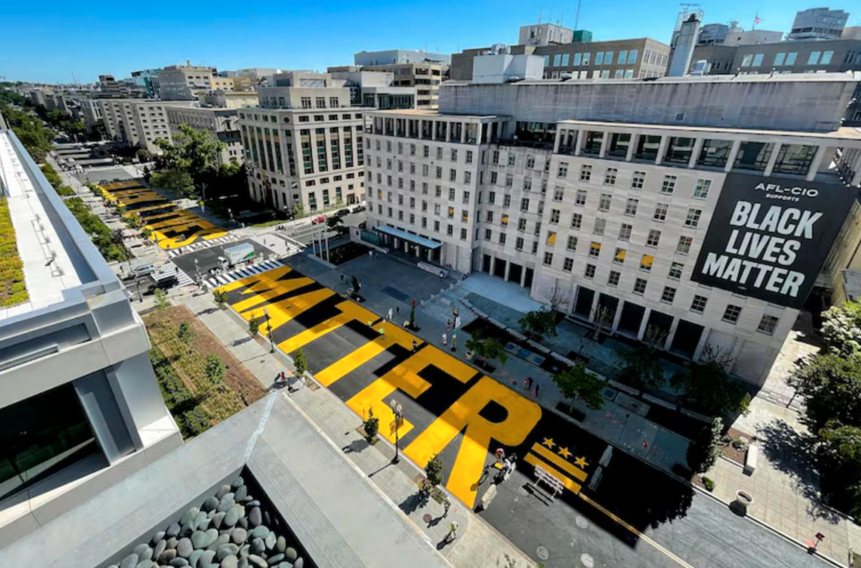 В последние два десятилетия гротески стали визуальным языком демократических администраций. Они сопровождали эпоху социальных программ, цифровых платформ, открытых данных, кампаний в духе Black Lives Matter, где визуальная коммуникация часто использовала простые, четкие формы sans-serif. Даже знаменитая надпись на 16th Street в Вашингтоне, созданная не шрифтом Calibri, а ручным летерингом, закрепила в массовом сознании связь современной гражданской активности с визуальным словарем гротесков. В этих условиях любой sans-serif начинает ассоциироваться с инклюзивностью, доступностью и цифровым гуманизмом.