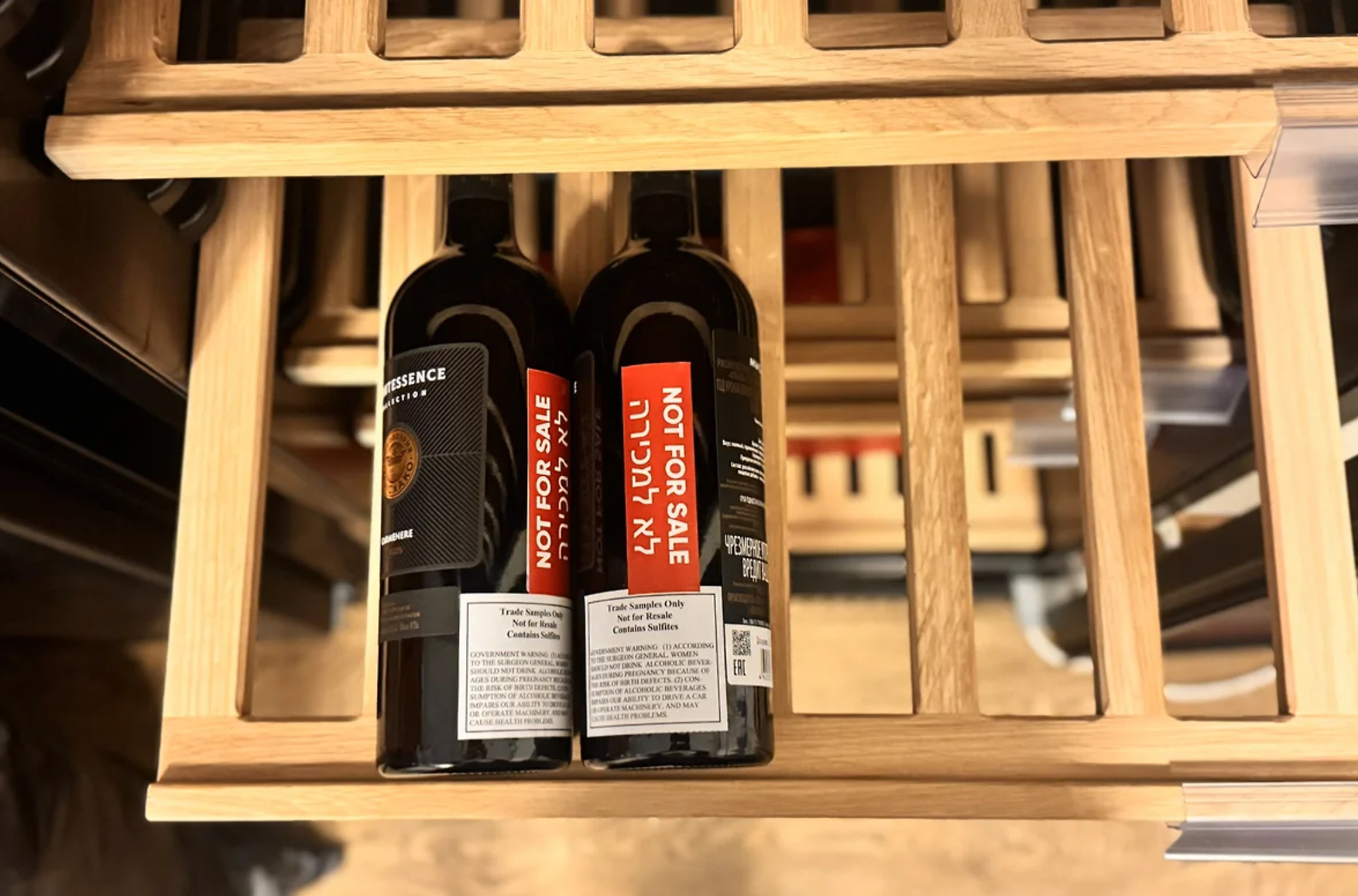 Образцы вина со стикерами, закрывающими акцизные марки. Фото: «Коммерсантъ»