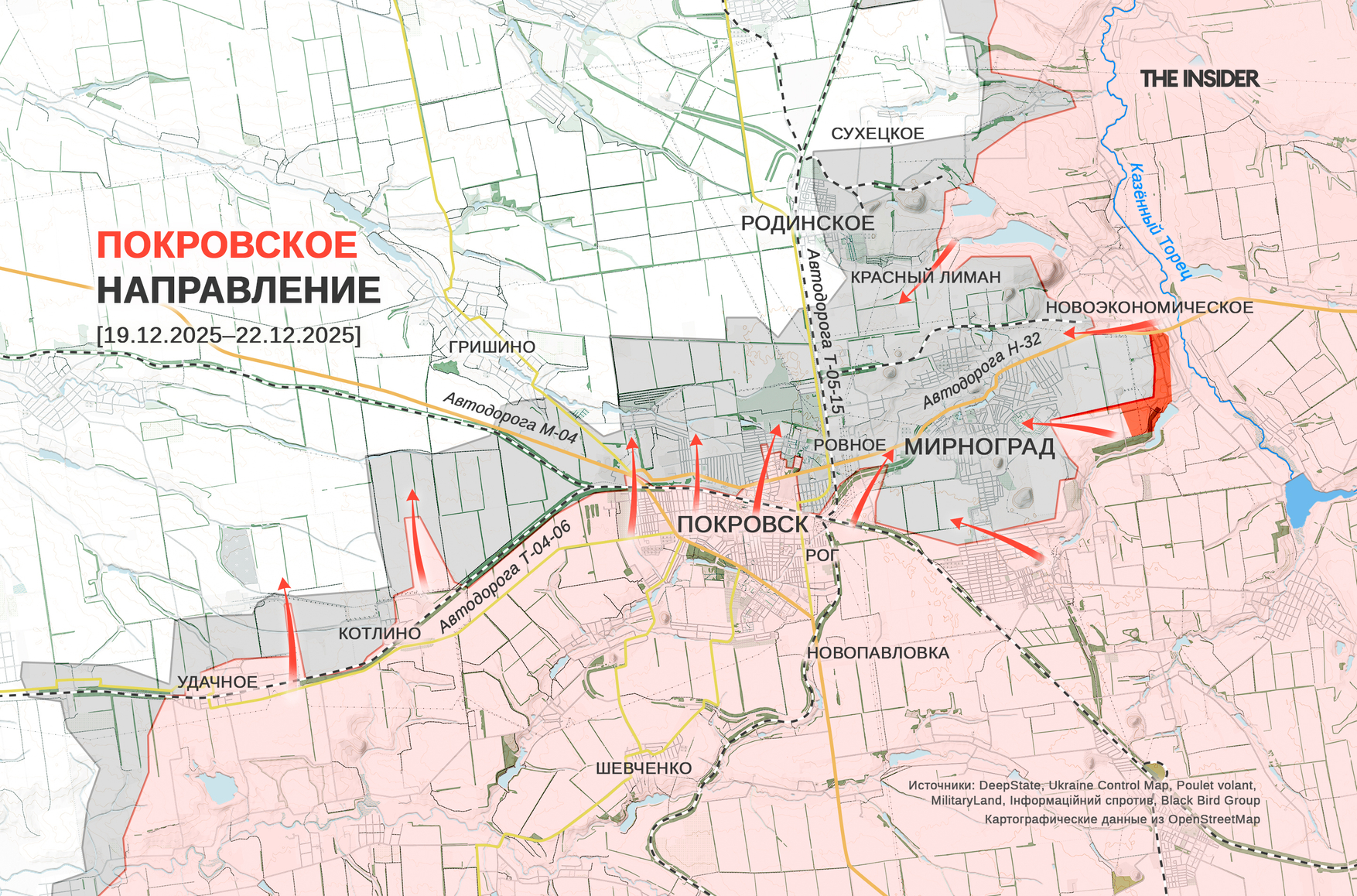 В DeepState сообщили, что ВС РФ продвинулись в районе Новоэкономического к востоку от Мирнограда (до 2016 года — Димитров) и теперь практически полностью контролируют поселок. Сам Мирноград проект полностью поместил в «серую зону», включая участок центра, ранее помеченный как подконтрольный СОУ. В Минобороны РФ, в свою очередь, объявили о захвате Светлого к северо-западу от Мирнограда.