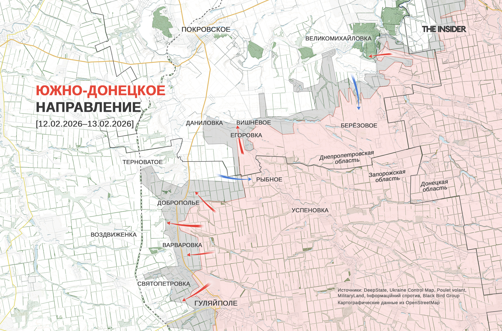 Показательно, что еще 10 февраля исследователь под ником Clément Molin утверждал, что украинские действия можно назвать контрнаступлением, только если считать, что ЛБС проходит там, где ее обозначают Z-каналы, тогда как на самом деле СОУ действуют в «серой зоне», проводя ее зачистку от «просочившихся» российских военных. Тем не менее, на карте DeepState и Березовое, и Рыбное помечены как зона уверенного контроля ВС РФ.
