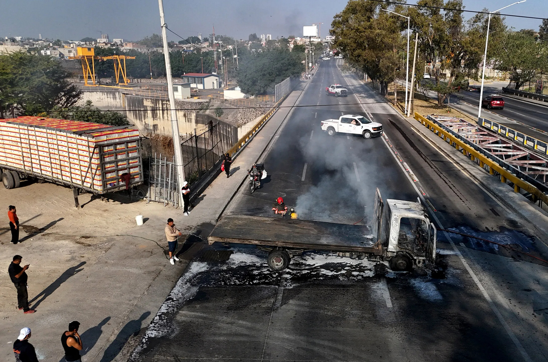 После гибели Эль Менчо в ряде штатов начались вооруженные столкновения и массовые поджоги автомобилей. В соцсетях появились видео с горящими машинами и перекрытыми трассами. По данным мексиканских изданий Reforma и Milenio, преступные группы поджигали грузовики и легковые автомобили, чтобы блокировать дороги. Жители Гвадалахары публиковали записи, на которых вооруженные люди простреливают шины автомобилей, перекрывая перекрестки.