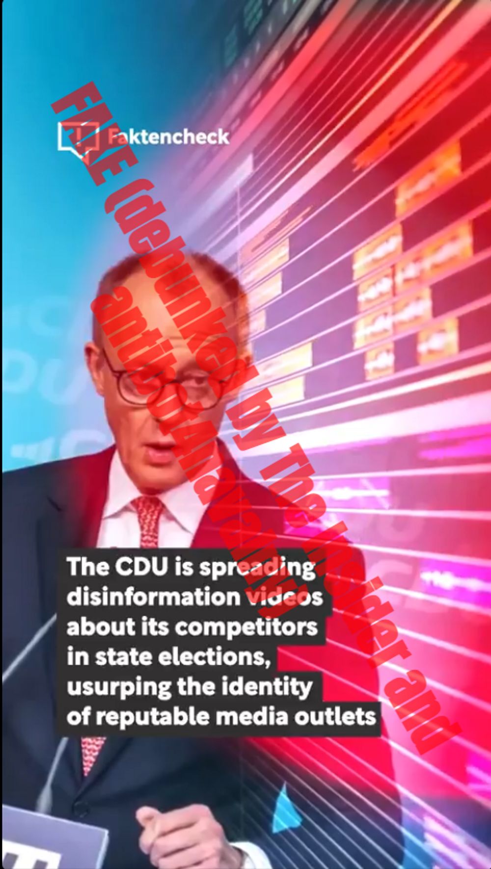 Сразу в двух видеороликах утверждается, что рейтинг ХДС слишком низкий для того, чтобы выиграть выборы: в одном просто утверждается, что ее рейтинг составляет не больше 7% (тогда как различные соцопросы оценивают его в диапазоне от 25% до 27% на начало марта), в другом - что он сильно упал после визита канцлера Фридриха Мерца в США (что также неправда). Всего в рамках нынешней кампании распространяются 10 уникальных роликов, все из них так или иначе касаются темы выборов.