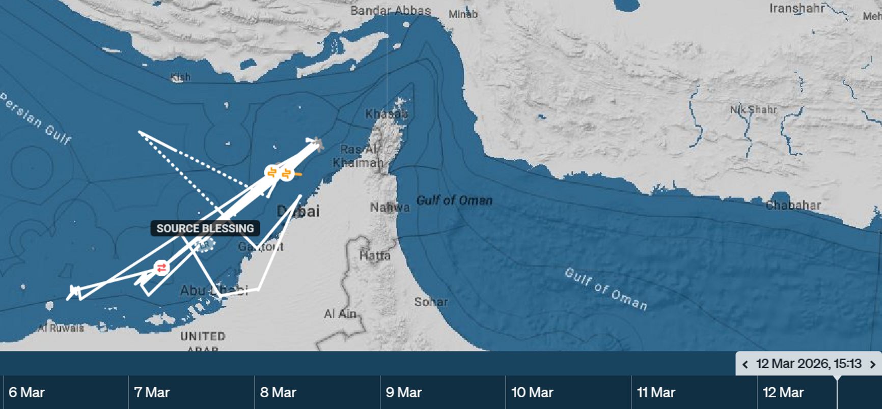 Как утверждает Stern, Hapag-Lloyd не может предоставить информацию о маршруте, грузе или количестве людей на борту, поскольку сдает его в субфрахт датской компании Maersk. Согласно данным сервиса Starboard Maritime Intelligence, владелец судна — гонконгская компания WELL WONDER 1 LTD. 3 марта контейнеровоз вышел из порта Гантут в ОАЭ и около недели курсировал туда-сюда вдоль побережья. Сейчас он, вероятнее всего, возвращается в Гантут.