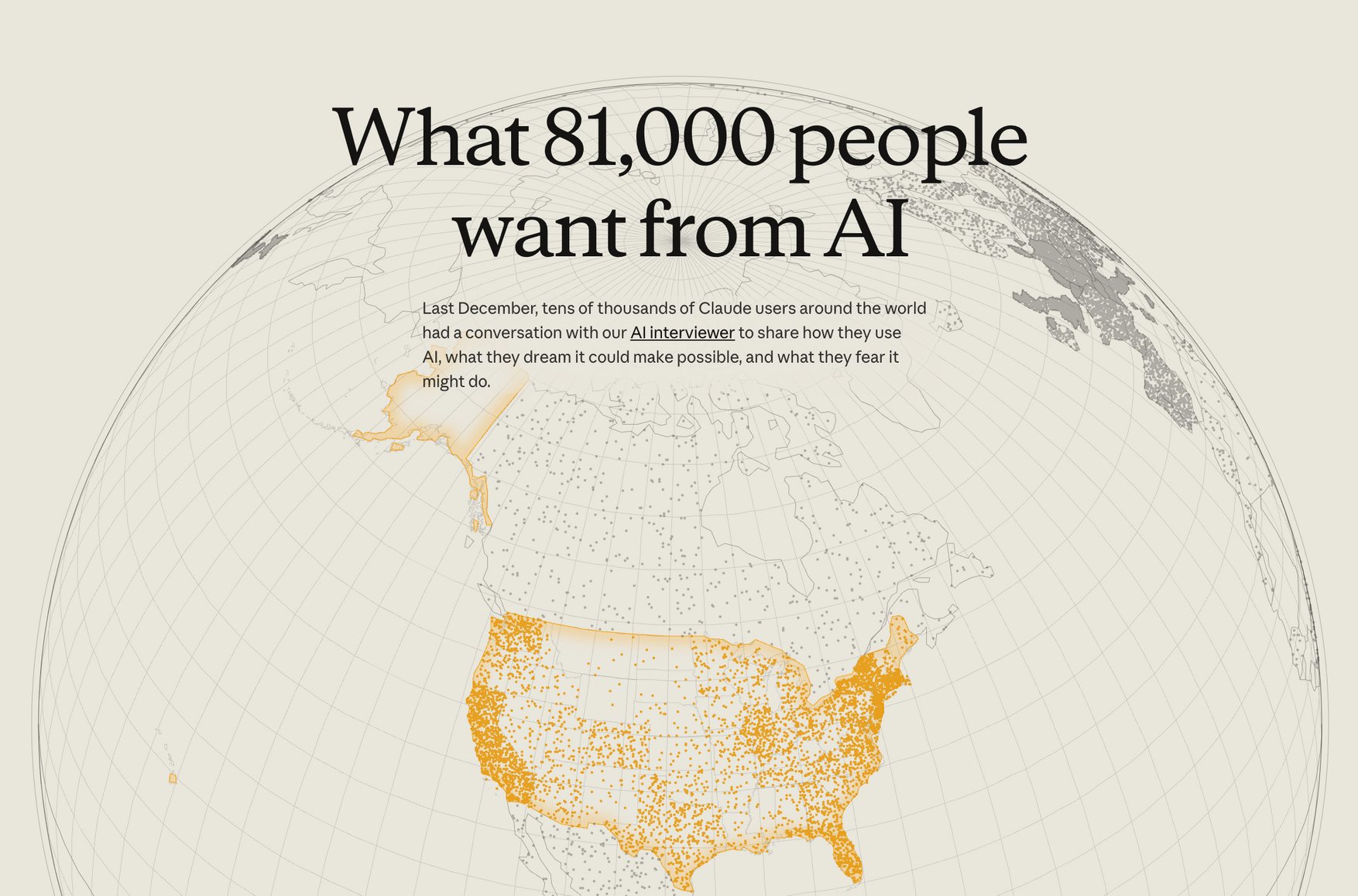 Компания Anthropic, разработчик чат-бота Claude, опубликовала результаты масштабного качественного исследования: более 80 тысяч пользователей из 159 стран рассказали в интервью о том, чего они ждут от искусственного интеллекта и чего опасаются. Опрос проводился в декабре при помощи специальной версии Claude, которая задавала вопросы и адаптировала их в зависимости от ответов. По утверждению Anthropic, это крупнейшее подобное исследование в истории — как по числу участников, так и по количеству языков (70).